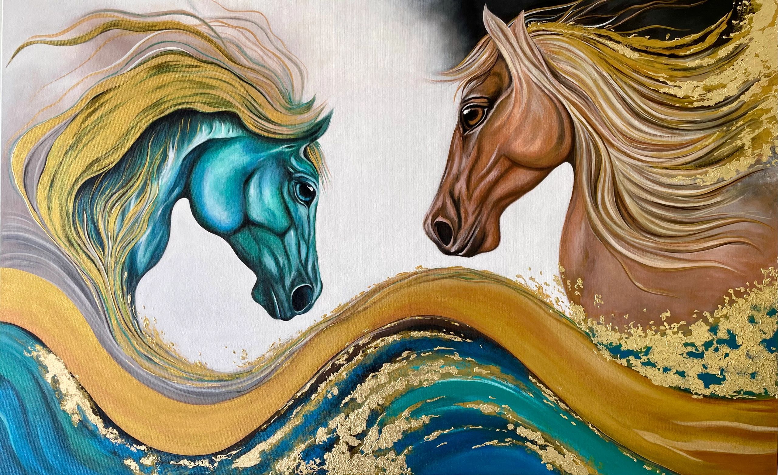 Gilded Horses Acrylic Painting